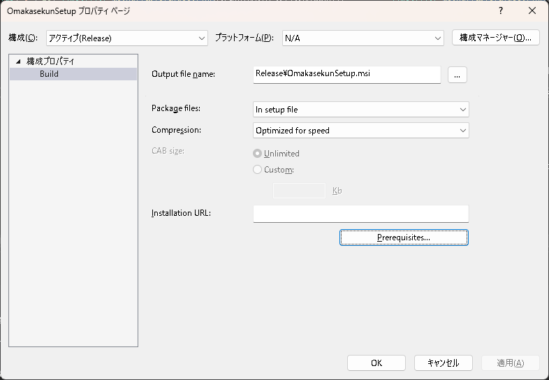 セットアッププロジェクトのプロパティページで下の方の「Prerequisites…」ボタンを押して、